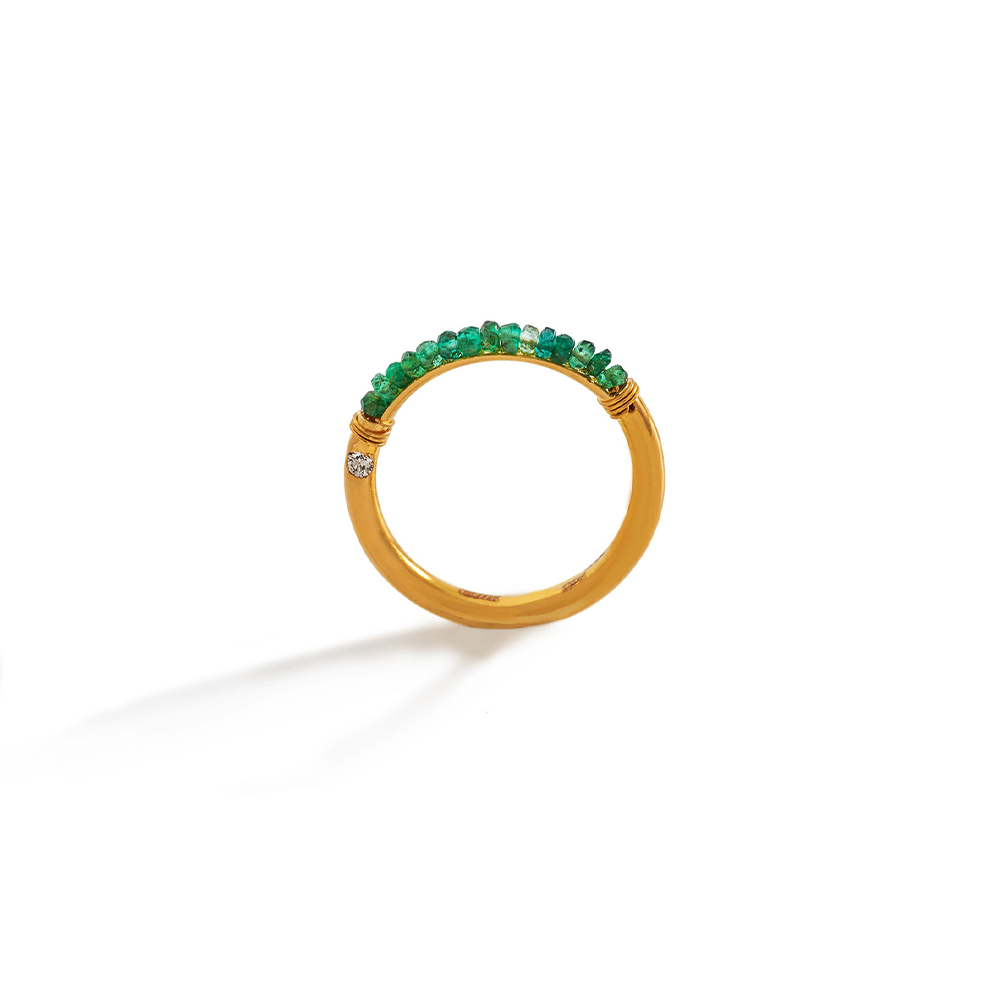 22K Yellow Gold (1.6 grams), VS, G Color Diamond (0.03 carat), and Emerald (0.587 grams) approximately.