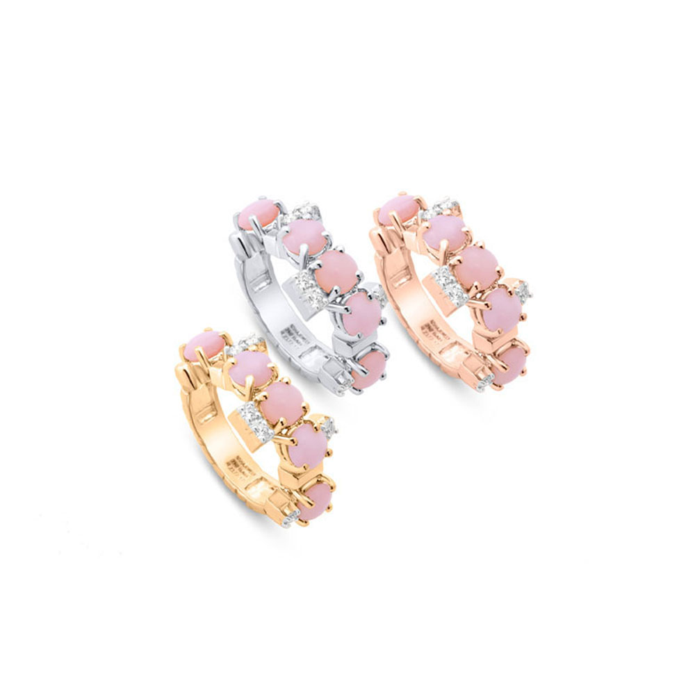 ذهب أصفر عيار 18 (6.334 جرام)، مرصع بالألماس درجة ڤي اس، اللون جي (0.21 قيراط)، وأوبال وردي (0.662 جرام) تقريبًا.