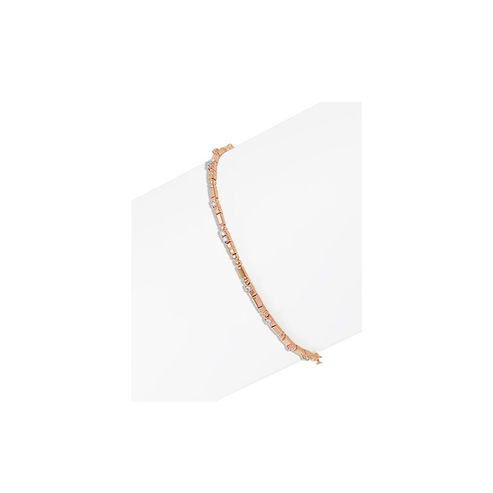 ذهب روز عيار 18 (9.884 جرام)، مرصع بالألماس درجة ڤي اس، اللون جي (0.39 قيراط) تقريبًا.